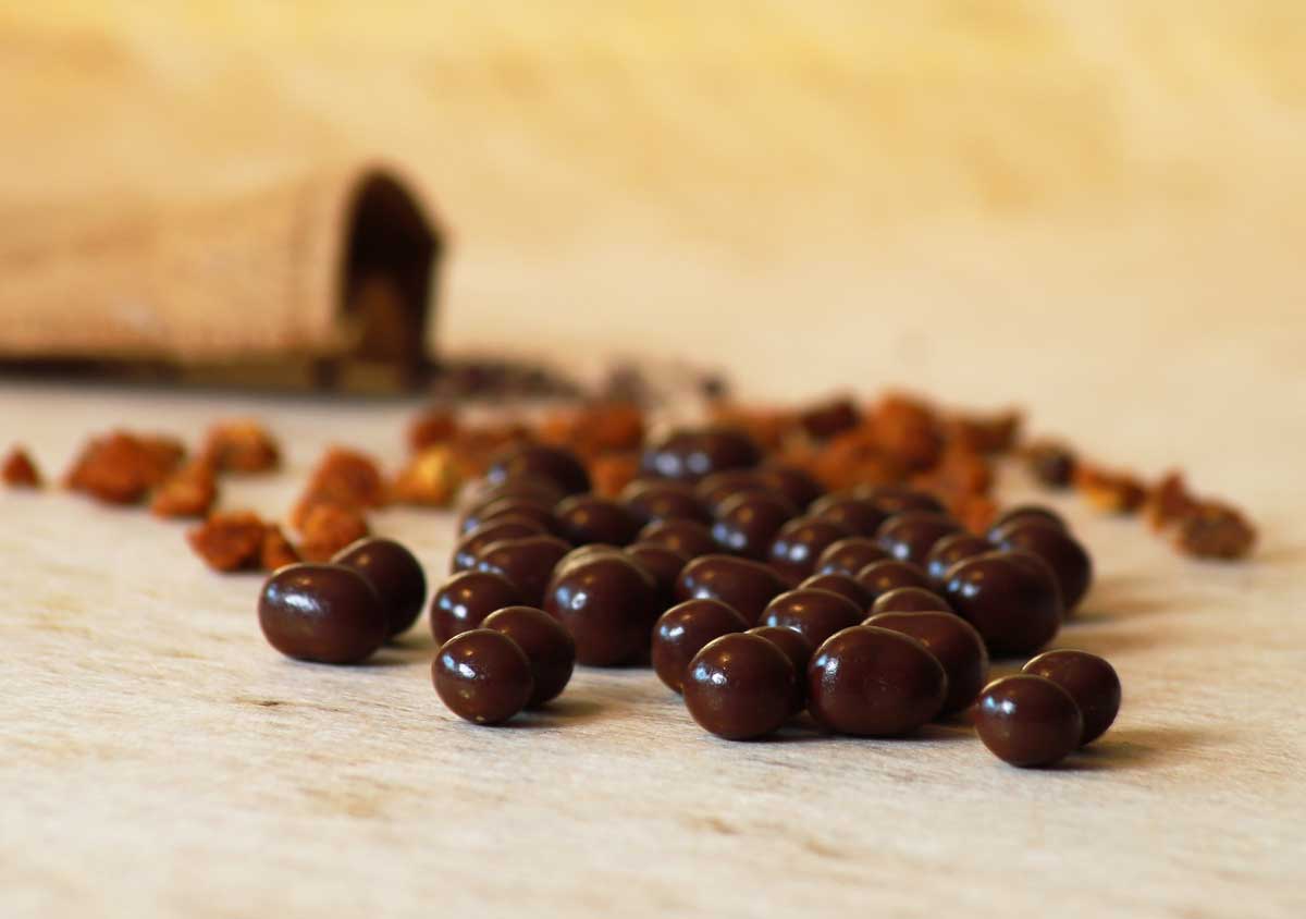 Our technology allows as producing the best chocolate covered products. We made customized chocolate enrobed products as dried fruits, extruded products, cacao beans, coffee beans, etc. all with the additional value of handmaking. Our experts guarantee a perfect balanced chocolate covered product, shiny and uniform in all aspects.